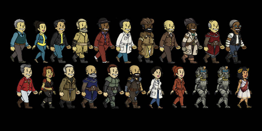 Жители — основной пропеллер Убежища. Благодаря им Вы можете получать ресурсы, отбивать атаки или находить новые вещи, исследуя дикую местность. Каждый житель драгоценен для хорошо организованного Убежища, потому что у каждого из них есть различные сильные стороны, которые позволяют им достигнуть различных целей.