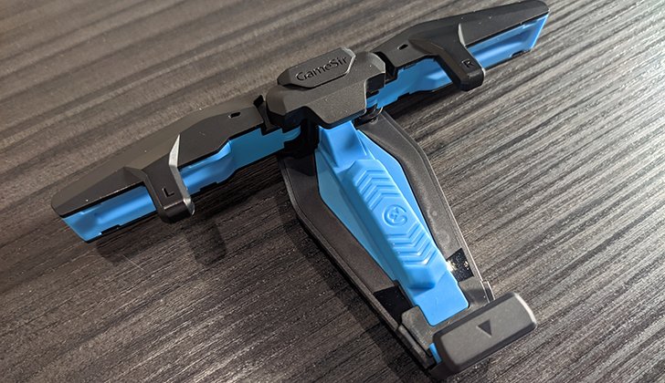 Простая конфигурация с двумя кнопками, с парой триггеров на левый и правый указательные пальцы. Это позволяет легко играть в большинство мобильных игр, поскольку они обычно предназначены для управления двумя пальцами или большими пальцами. Каждый из триггеров прикреплён к небольшому прорезиненному фланцу, который выступает над экраном вашего телефона. Когда вы нажимаете на триггер, отправляется электрический сигнал на сенсорный экран, мгновенно имитируя нажатие пальцем.