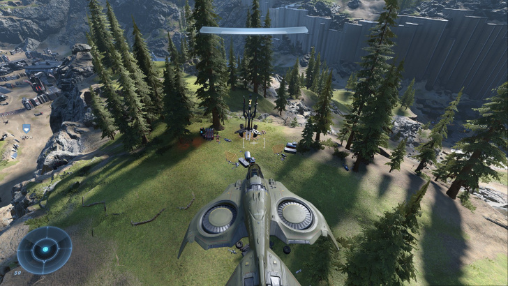 В качестве бонуса, если посмотрите на запад, то сможете увидеть маленькую светящуюся зелёную пещеру. Присядьте и следуйте по проходам, там вы наткнётесь на модуль спартанцев.