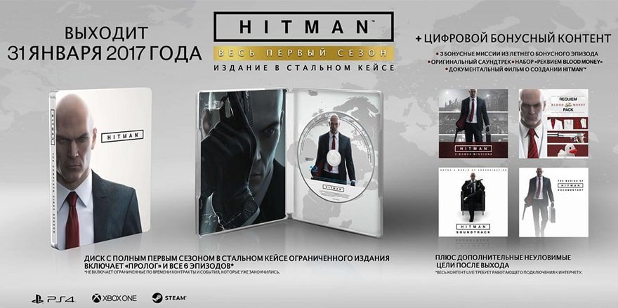 Игра Hitman вознаграждает переигрывание, и когда Ваша первая неуловимая цель раскрывается, Вы бы обрадовались, если бы знали детали. В этом смысле выход по эпизодам было действительно крут, потому что у игроков было много времени, чтобы проверить окружающую среду перед продвижением дальше, к следующей цели. Ваша игра, Ваш путь: цифровая версия полного первого сезона может быть Вашей уже сейчас, или в розничной продаже 31 января.
