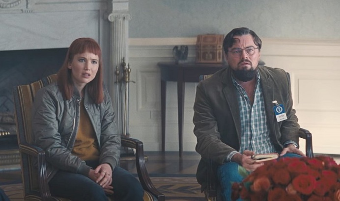 В новом трейлере к фильму «Не смотрите наверх» мы видим Ди Каприо и Лоуренс (в главных ролях профессора Рэндалла Минди и аспирантки Кейт), пытающихся заставить правительство прислушаться к науке. Так что же эти двое делают, чтобы их услышали? Они сливают это в прессу. А в эпоху цифровых технологий, когда любой может получить информацию оттуда, дуэт устремляется к новостным станциям и социальным сетям, чтобы сообщить всем, что мир подходит к концу.