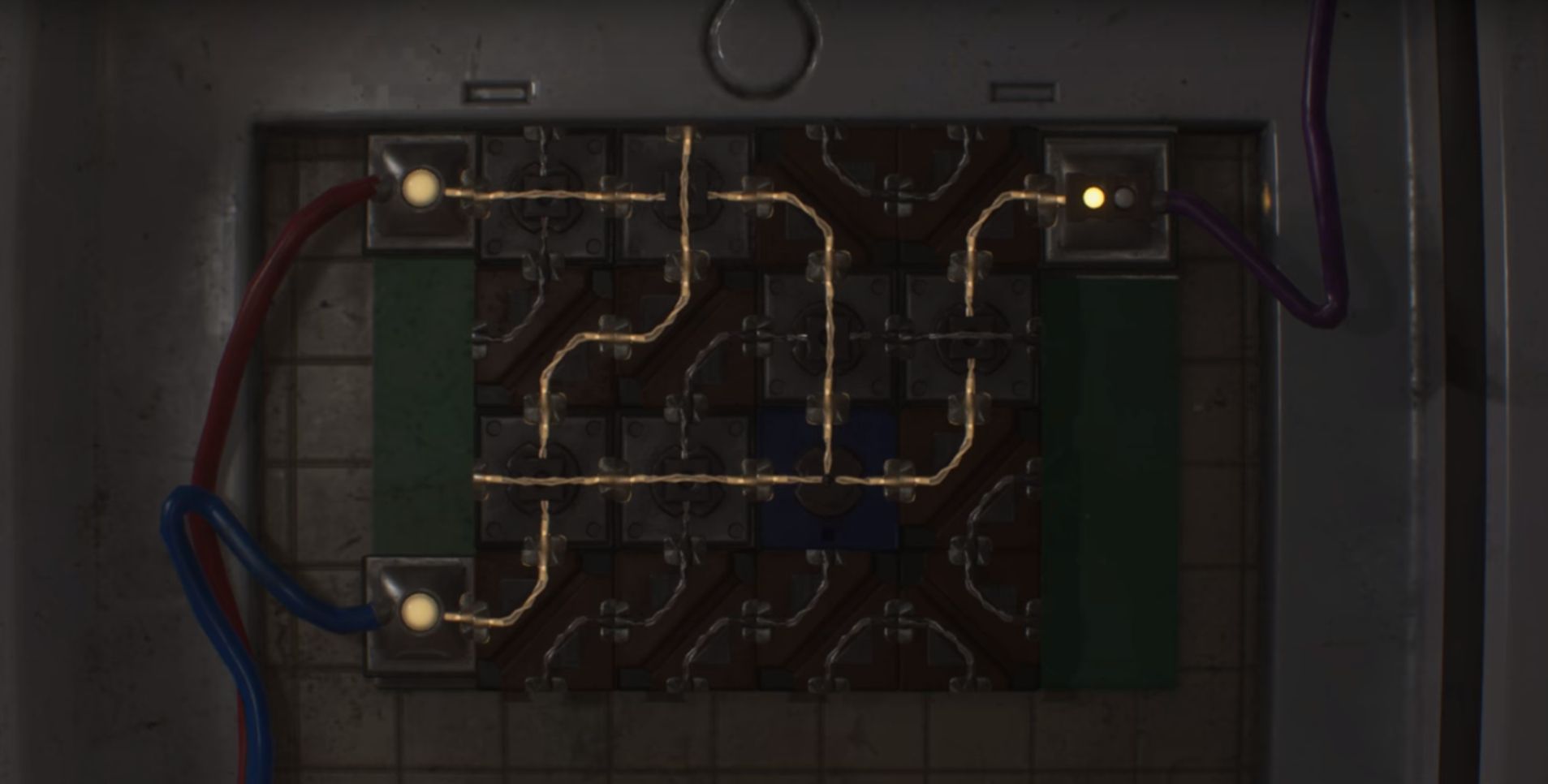 В офисе шефа полиции можно наткнуться на одну из таких головоломок. Решив её, Клэр или Леон сможет получить магнитную карту от гаража и попасть на парковку. Только исходный вид схемы и, соответственно, решение для каждого героя будет отличаться.
