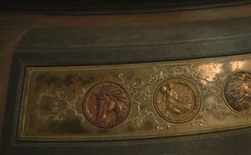 Используйте Ключ с трефи в Комнате записей, и внутри вы найдёте Порох рядом с дверью, а вверху возле Двери с черви найдёте Гранату и Ручку механического домкрата — предмет, который вам нужен, чтобы наконец добраться до верхнего этажа Библиотеки и Главного зала.