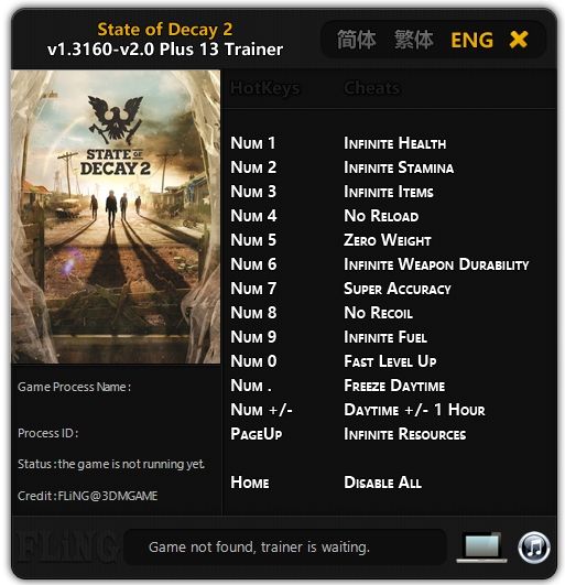 Скачать трейнер state_of_decay_2_v1.3160_v2.0_plus_13_trainer.zip
