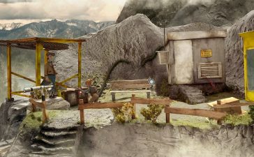 Внутри посмотрите на картину справа от двери и взаимодействуйте с ней, чтобы снять и увидеть скрытый выключатель. Нажмите на него, чтобы включить свет, а затем возьмите упавший стакан с одного из столов. Посмотрите открытки, расположенные на стене барной стойки. Возьмите одну из них с картой местности. Используйте плоскогубцы на панели с переключателями (справа от входной двери).