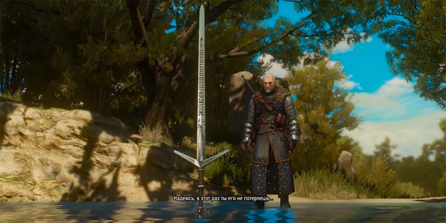 Если Вы играли в первого Ведьмака, то, вероятно, помните как Дева Озера дала его Вам. Именно Владычица Озера даст Вам его и в этот раз, после того, как Вы подтвердите, что достойны меча.